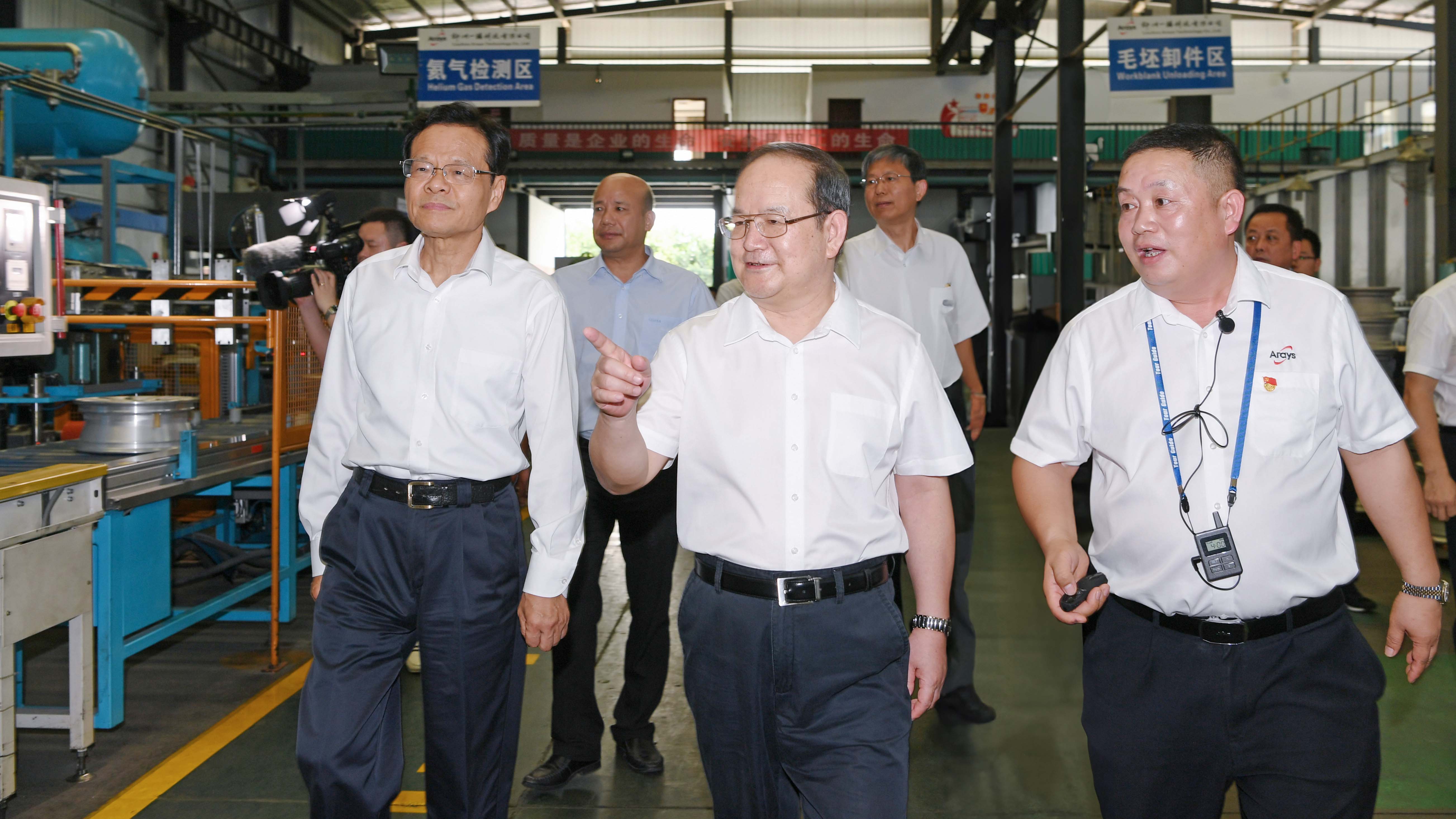 2018年9月3日下午,广西壮族自治区党委书记鹿心社,自治区党委副书记、自治区主席陈武率各政府机关领导莅临柳州一阳科技股份有限公司进行参观调研考察工作,柳州市市委书记郑俊康、柳州市市长吴炜陪同调研,公司领导对自治区政府的调研组的到来表示热烈欢迎,并陪同深入生产车间、实验室等视察各项工作,详细了解我司的安全生产、产品质量及工作流程等情况。